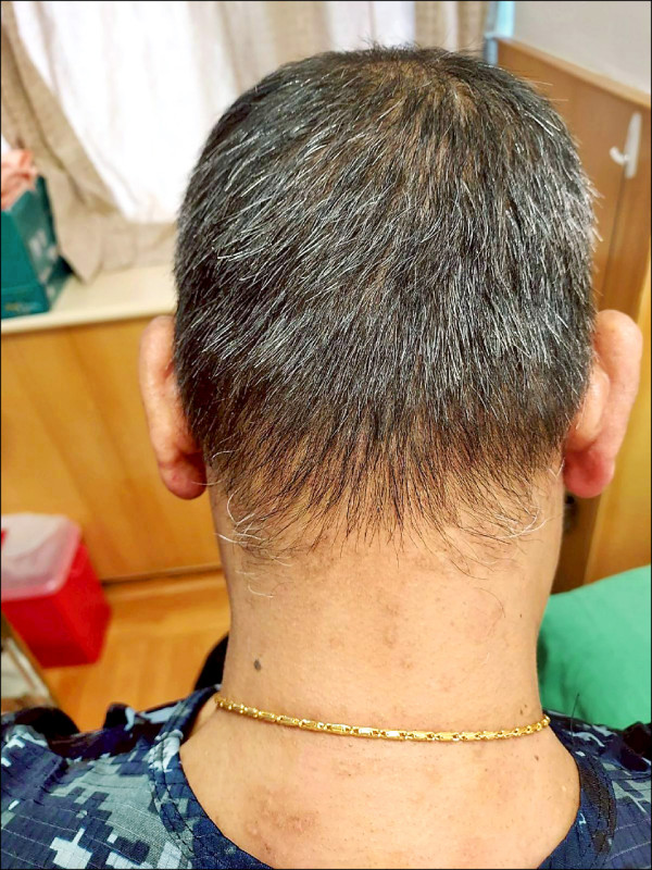 ▲林先生是異位性皮膚炎患者,曾經發病時,全身遍布丘疹與結節性癢疹。(台北慈濟醫院提供)